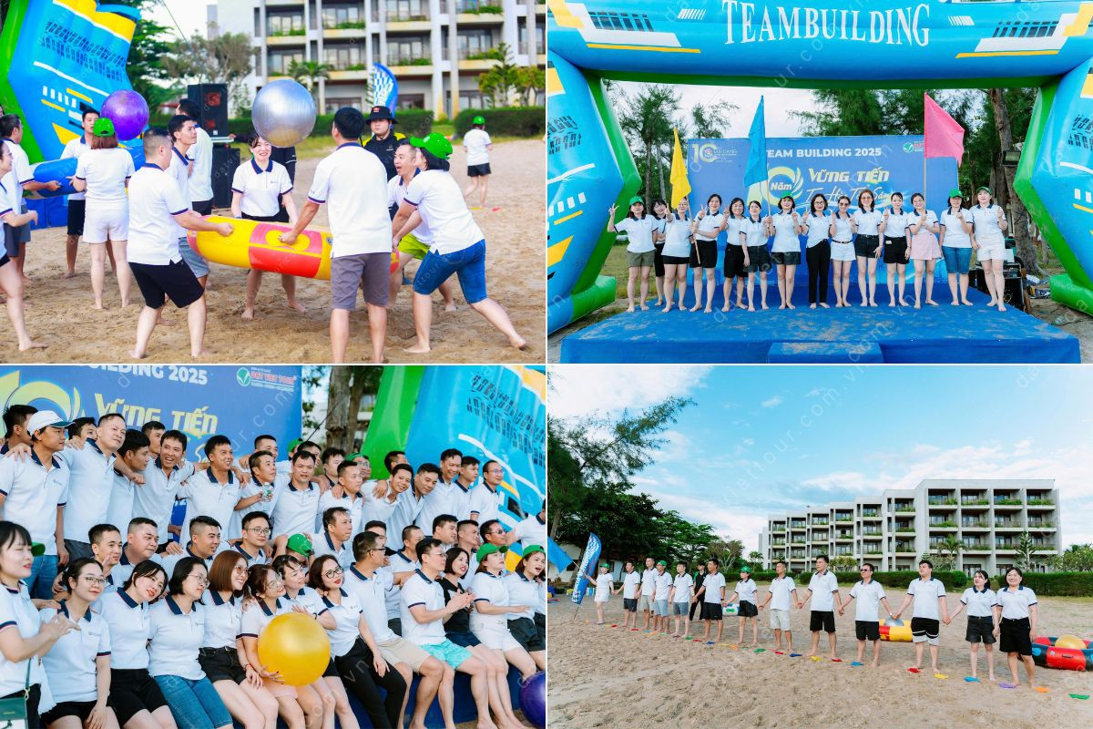 Những trò chơi team building đầy sáng tạo trên bãi biển mang đến tiếng cười giòn giã và tinh thần đồng đội bùng nổ. Đêm Gala Dinner tiếp nối với không gian ấm áp, rực rỡ sắc màu và những phút giây sẻ chia đã giúp tập thể thêm gần nhau hơn, để lại dư âm khó quên trong lòng mỗi thành viên.